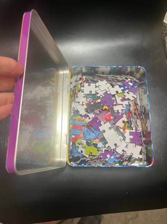 Beatle's Puzzle in a Fashionable Tin, 6"W x 8"L x 5"D , 300 pieces. A fun puzzle, not stressful and good family fun.