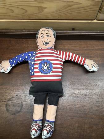 Vintage Fat Cat Inc dog toy with squeaker Bill Clinton presidential edition, 1998.