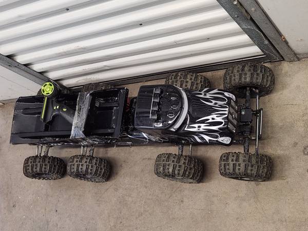 No box, Comes as is, with Flysky Radio, Electronics, all 4 motors, upgraded to all wheel steering, Flysky 10 channel radio can use up to 10 RC vehicles, you will need batteries, one tire linkage needs replaced, keeps comming off, part # wheel axles MAD-MT2071 on there website ( nitrorcx.com/mad-mt2071.html ) if I fix price will be 400.