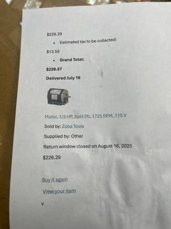 Unfortunately, when I decided to return it, my window of opportunity closed at August 16 so I am posting here on craigslist in hope that somebody could use a brand new motor, unused.