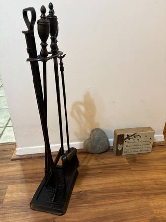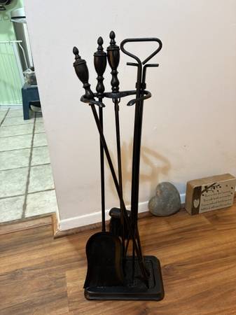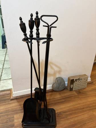 This is a 5 piece black set of fireplace tools: 30" H shovel, poker and tongs, plus sturdy iron base.