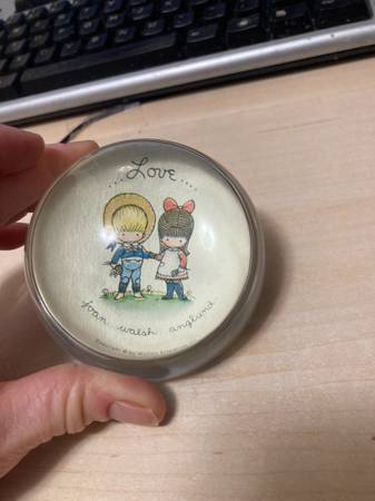 This is a very cute and sweet vintage paperweight with a boy and girl in domed glass.