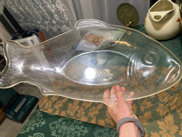 21"L x 10"W large fish tray, great for a party with cold cuts, fish, anything can go on it. Cute platter and in excellent condition, no cracks. Vintage 80s. **Please see our other fish items and...