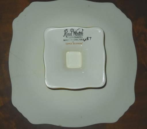 (1) "Apple Blossom" by Royal Winton footed cake plate (has hairline crack on bottom)