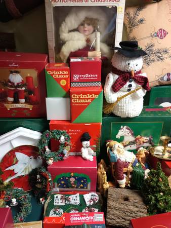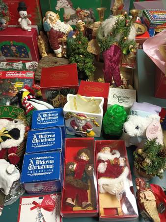 Selling a large collection of Christmas ornaments decorations and collectibles with some being in the $1-4 range and the more collectible pieces being $10-35. Or buy the entire collection at a discount for $195.