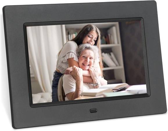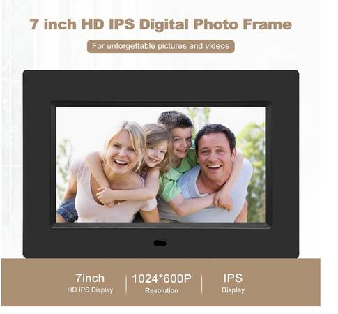 7 Inch Digital Picture Frame Digital Photo Frame IPS Display Full View Angle Video Music Playback with USB SD Card Slots Calendar/Time/Alarm ----Its beveled wood frame and sleek black color make it a stylish addition to any home or office.