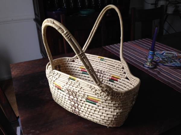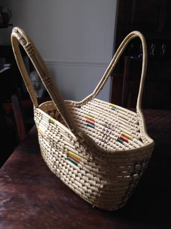 Purchased in Jamaica and in perfect condition; large basket with long handles. Basket measures roughly 8" x 18" and is about 9" tall, without handles. Silver Spring, just north of Colesville off of...