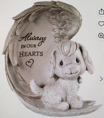 Pets are members of the family. They play with us, relax with us, share our worries, and share our joys. When a beloved dog crosses the rainbow bridge, it can be truly heartbreaking. They become such an integral part of their owners’ lives, bringing joy to each day. Comfort is felt through remembering the fun times shared and knowing that the loyal pup was given the best life imaginable. Featuring a dog sitting atop a glorious angel wing, this garden stone serves as a touching memorial to a friend who will forever remain in the heart. A heartfelt gift for someone mourning the loss of their dog, this garden stone helps them navigate their feelings and is a tribute to the special bond they shared with their pet. Measuring approximately 7”L x 3.25”W x 8”H this memorial stone is constructed of cold-cast resin. For more than 40 years, Precious Moments has been devoted to making the world a kinder place by helping people share love. A timeless brand, Precious Moments helps you celebrate everyday moments and commemorate special occasions with hand-painted porcelain figurines and ornaments as well as contemporary kitchenware, home decor, baby gifts, and more. A unique inspirational message lies at the heart of every Precious Moments product, thoughtfully designed so you can turn your special moments into memories that last a lifetime.