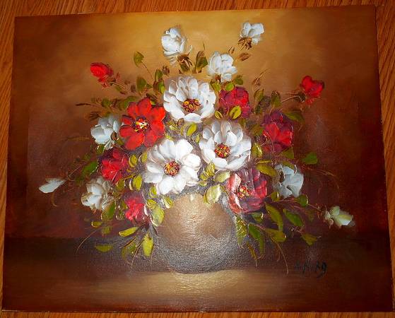 lovely vase of flowers painting on 20"x24" stretched canvas --signed by "Edward"