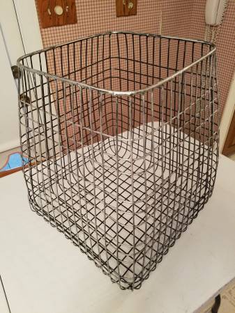 cool vintage wire basket approx size 15 x 15 x 20 tall this is top measurement the due to shape bottom is larger INTERESTED OR QUESTIONS SEND NAME PHONE # AND BEST TIME TO REACH YOU