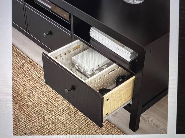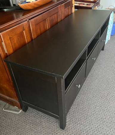 TV unit, black-brown, 58 1/4x18 1/2x22 1/2 " and sells for $329.99, so basically $330 + 6% tax.