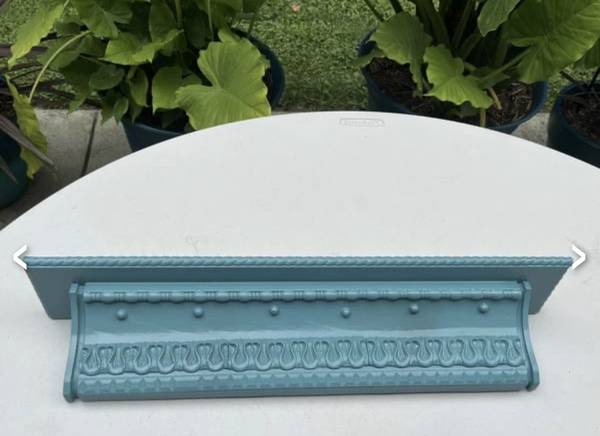 Teal wood wall shelf for $15. Measures: 24 1/2" long x 4" deep. View the "more ads by this user" link for more items I am selling. ~ Kathy