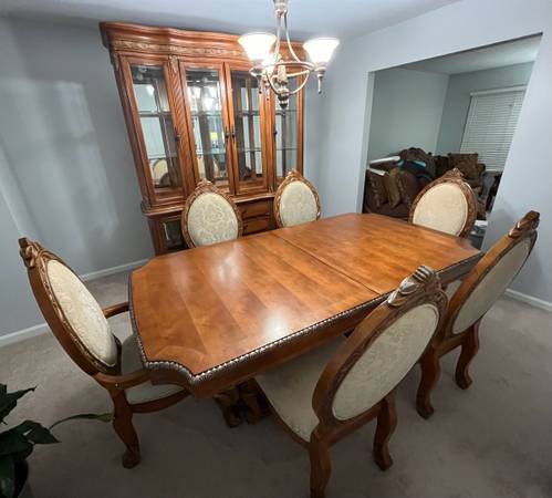 Set Includes 6 chairs, table, 2 removable leaves, buffet and hutch.