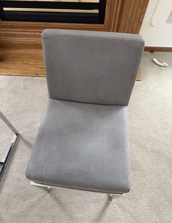 TWO EMERY LEATHER DINING SIDE CHAIR. Color did not match our existing chairs. $1,100/ per chair brand new. A tubular steel base gives our postmodern side chair a machine-age reference. Its slender legs support the impeccably upholstered seat and back for a crisp and geometric silhouette. Plush foam cushions provide the perfect combination of comfort and enduring support.