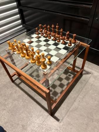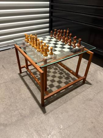 This unique chess table came from designer interior goods store in LA. Approx. dimensions 24"Lx24"Wx20"H