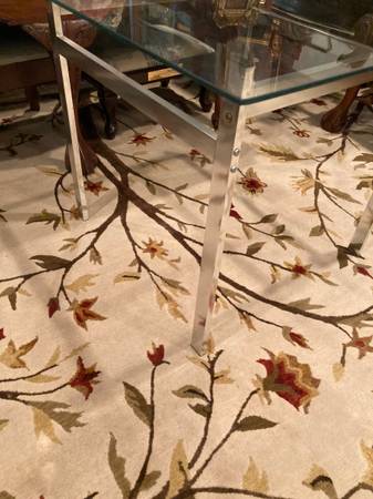 Great mid-century design table. Perfect size for end table or small coffee table - 24" square x 18" high. Clear glass top and chrome base. Excellent quality table! $40