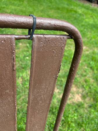 Perfect addition to your outdoor space! The bench measures 45x22x35.5 and the chairs measure 21x21x42.5 One chair can be welded in 2 places where the headrest is and the other chair can be welded in...