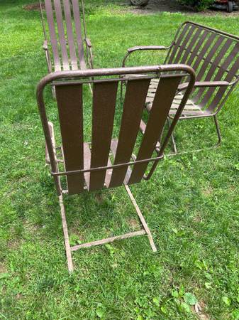Beautiful 50s Metal Patio Conversation Set Bench and 2 Chairs -...