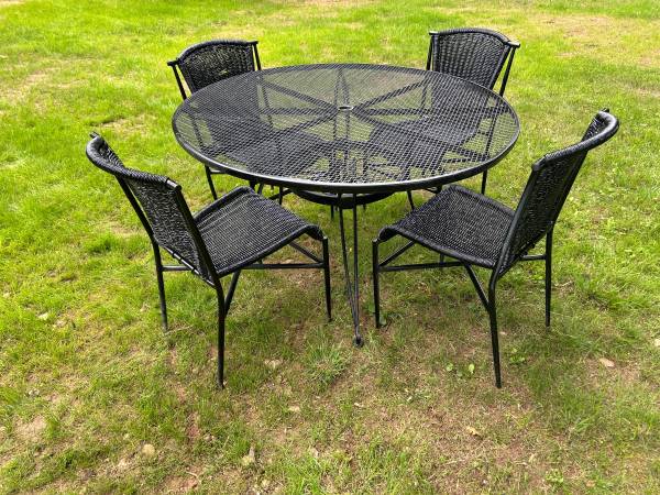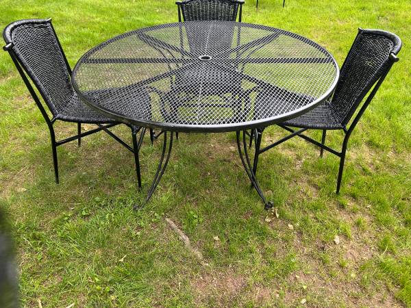 Perfect for your outdoor space! The table measures 48x28 and the chairs measure 18x16x32.5 Heavy set Very sturdy Delivery available!