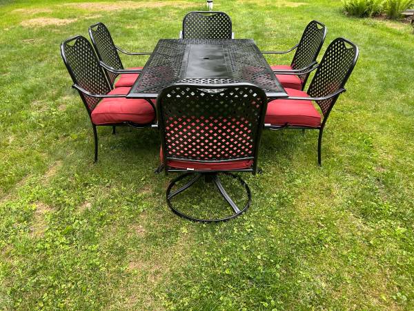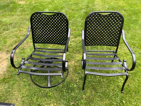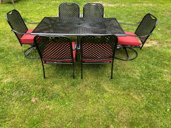 Perfect for your outdoor space! The table measures 66x39x28 and the chairs measure 21x24x36 Very durable Delivery available!