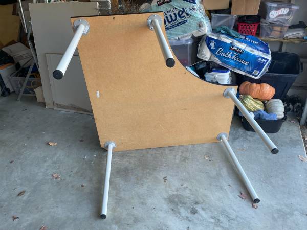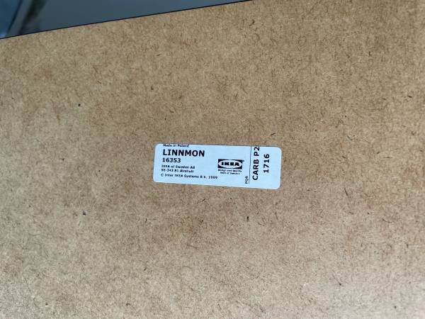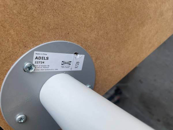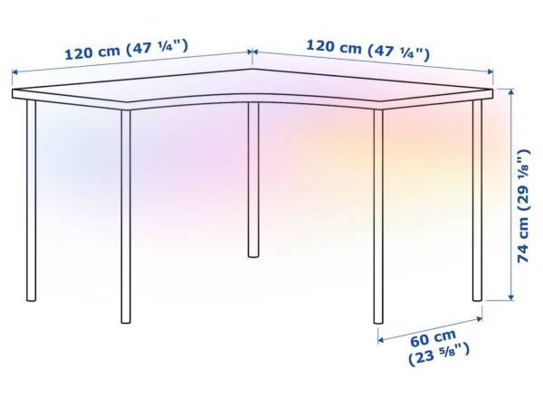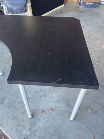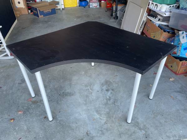 IKEA Linnmon corner desk piece in black-brown. Adils legs (5) in white. Measurements in photos.