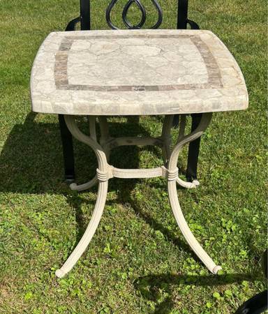 Perfect addition to your outdoor space! The table measures 26x26x28.5 and the chairs measure 20x24x36 Delivery available!!