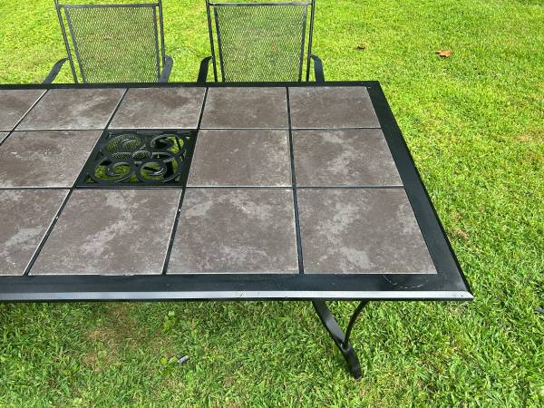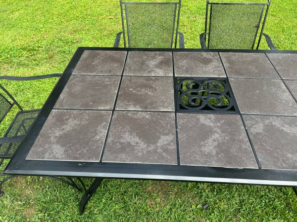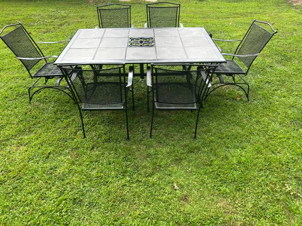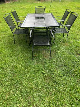 Perfect addition to your outdoor space! The table measures 66x42x28, the chairs measure 18.5x22x36 and the stand measures 19x10 Very durable Delivery available!