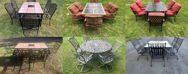 I have a wide variety of 6 chair patio sets ranging from $500 to $2000 Feel free to look through the collage and pick which set best suites you. I am available for any questions you may have...