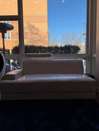 White leather sectional with adjustable headrest. Comes in 3 pieces.