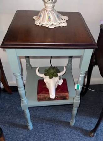 Solid wood, fabulous vintage end table, reimagined is soft sage / mint green with a fully refinished top. Cute and sturdy perfect accent for your home! A coordinating table is available ( see listings in my profile).