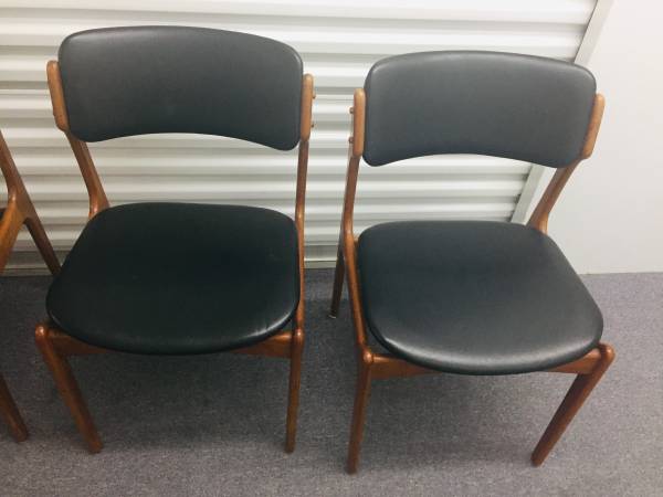 Beautiful MCM Black Leather & Teak Dining Chairs by Erik Buch Set of 6 - $2400 Mid century, mobler