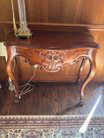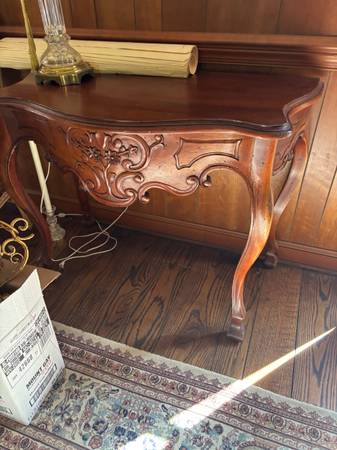 Console able 40 W across at back 34 across at front of it and 30" tall Good for a family room hallway or bathroom/ bedroom Solid - not light or flimsy. Perfect condition. Good for kitchen or office...