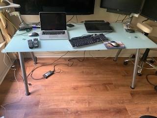 Desk Modern Glass with adjustable aluminum legs. 63x31