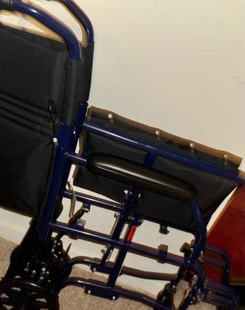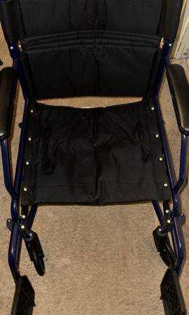 Selling: - New blue wheelchair for $250 (The wheelchair has an orthopedic seat that is not shown.) - Used twin headboard. I have the complete bed, but the side railings need fixing w boxspring $90.