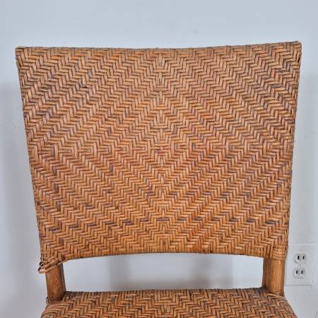 The chair is in good vintage condition: sturdy and with intact rattan on the back and seat. Some of the rattan bindings are loose or missing pieces, but they are nonstructural elements.