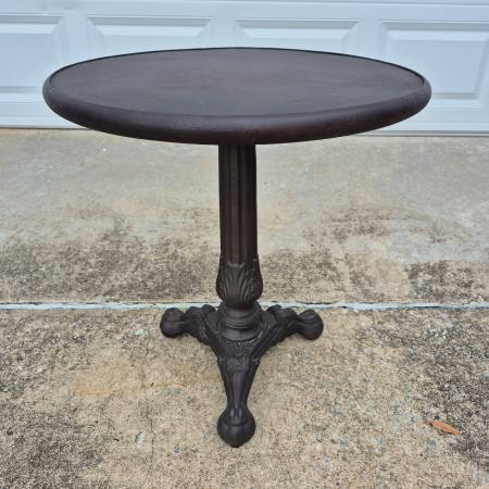 This is a round cast iron side table from Restoration Hardware, made in 2012, designed to evoke the neoclassical cafe tables in late 1800s France. I have two of these tables, and this one is priced a bit higher because it is in better condition than the other. Please see my other listings for more information on the second table.