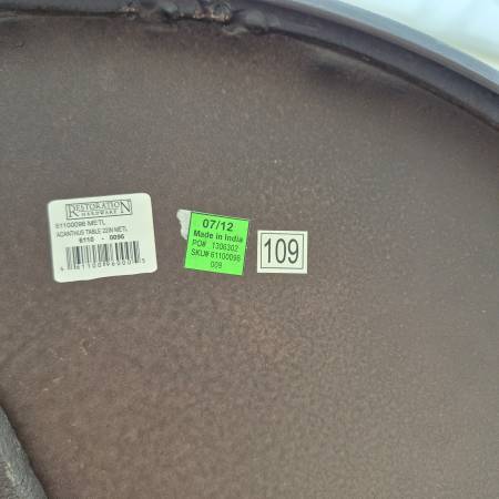 The 2012 table is in very good used condition. It is solid and sturdy with no structural flaws. The finish is in good shape with minor traces of rust on the base. Please see photos for more details about condition.