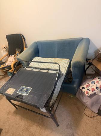 Free to a good home, we're moving and it's too big to take along with us. Must come pick up. Has a twin bed futon. 58.5" x 29" x 27"