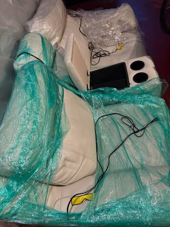 Leather sectional couch and love seat in great condition. Neutral cream color matches everything. 2 Left and 2 right end pieces all reclining. One middle seat and one middle cup holder/storage box.