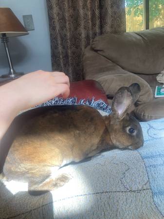 This is Gene! He’s a super sweet boy who’s looking for his forever home. Loves zoomies, flopping in your lap, and exploring. Not fond of collard greens, but loves lettuce and grass!