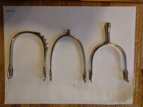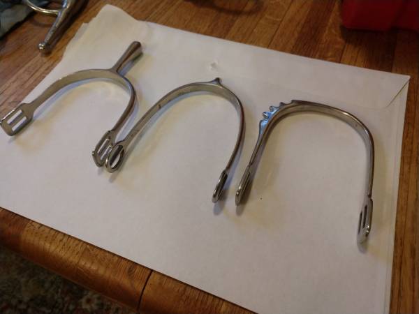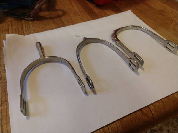 (1) Loose Ring Snaffle, (1) Full Cheek Snaffle, (3) Different Spurs. ALL made of Stainless Steel. $20.00