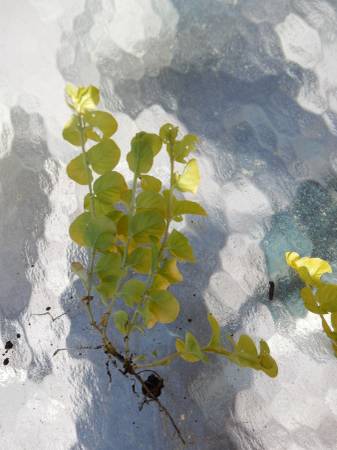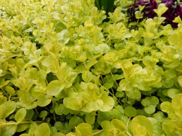Creeping Jenny is a low-growing, rampant, evergreen groundcover with rounded leaves.