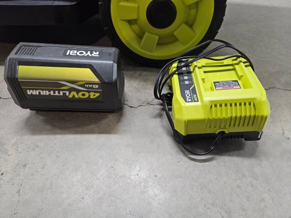 Brand new never used Ryobi Self-Propelled lawnmower. Bagger; charger and 6 ah battery