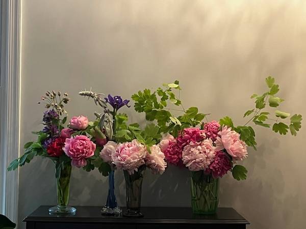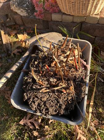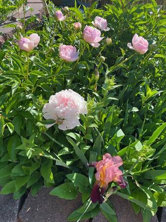 I had to dig up my beloved peonies due to landscaping change. Last may this cluster had over 100 blooms in two shades of pink. I have them separated in three pots. The largest clump 1'x2' has over 20 eyes and I want $60 for it. The smaller two are still very large and I am asking $40 and $30 for them. Or you can have all three for $100.