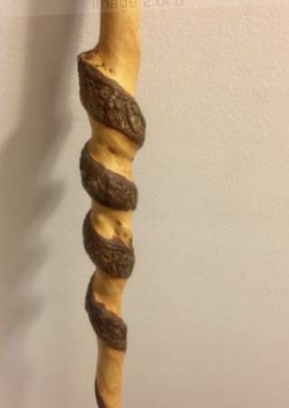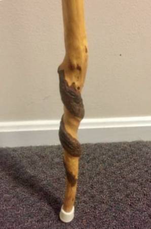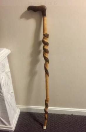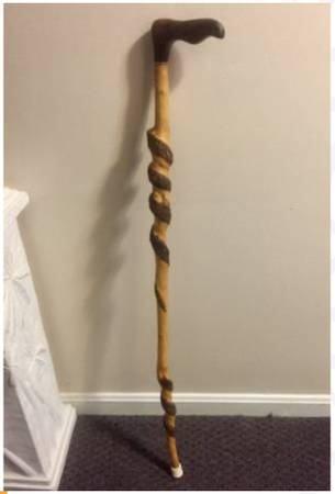Carved unique wood cane for $30. Very sturdy. Measures: 39 3/4" long. See my other postings with the user link. ~ Kathy