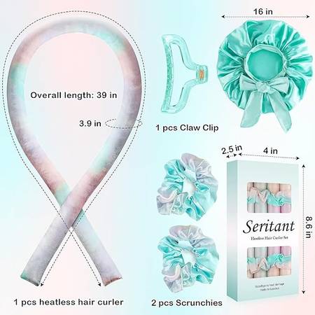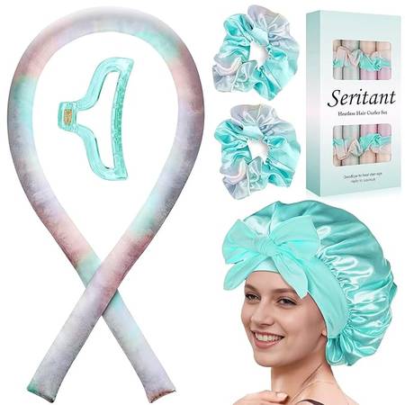 Heatless Hair Curler for Overnight Curls | No Heat Curling Rod Set with Satin Bonnet | Sleep-In Safe Blowout Rods for Frizz-Free Waves Green Tie Dye Bought from Amazon for $19.99+ tax, ask for $5....