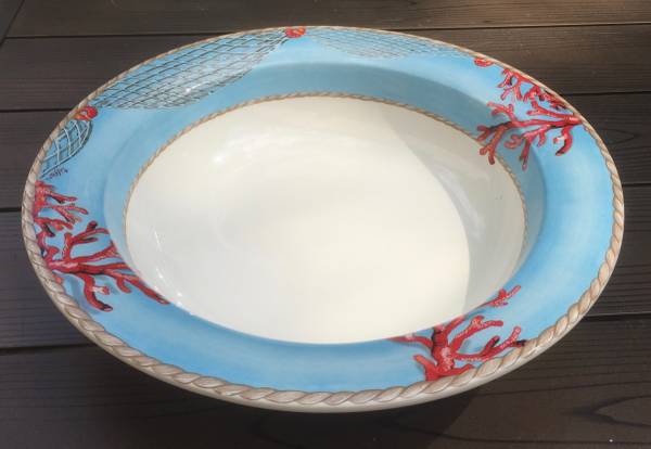 Coral design large bowl made in Italy for $20. Measures: 14 3/4" wide x 3 1/2" high. View the "more ad by this user" link for more items I am selling. ~ Kathy