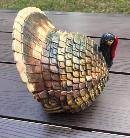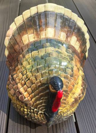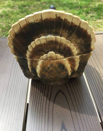 Ceramic turkey box for your Thanksgiving decor for $10. Measures: 7" tall x 6 1/2" wide from the back. I grew up with this early vintage turkey. See my other items I am selling with the user link. ~...