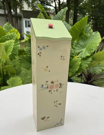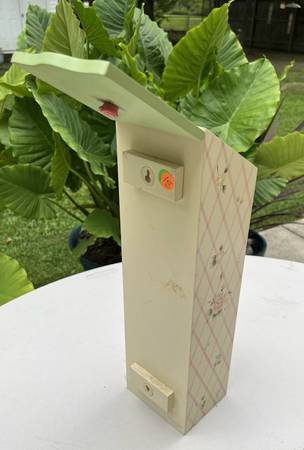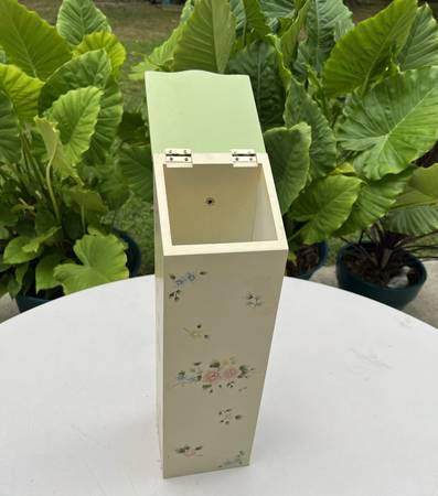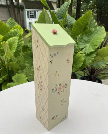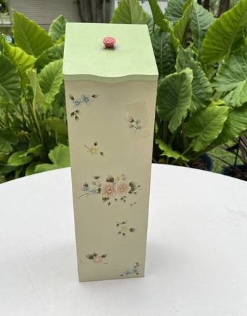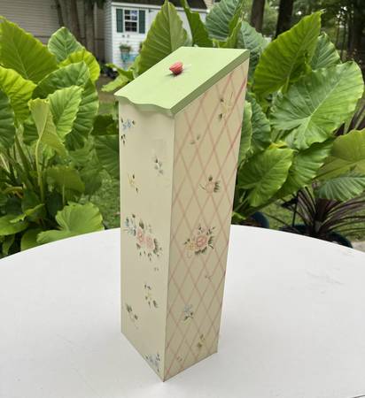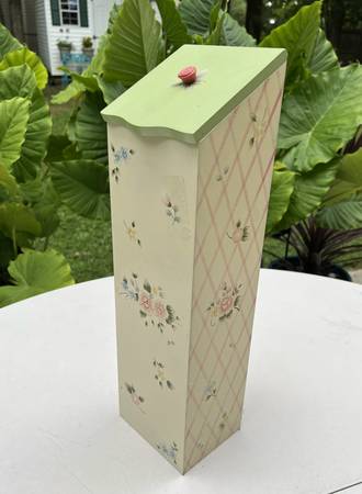 Wall mounted bag holder for $15. Measures: 18" high and 5" x 4 1/4" wide. Top flips open and opening on bottom to pull bags out. See my other postings with the user link. ~ Kathy