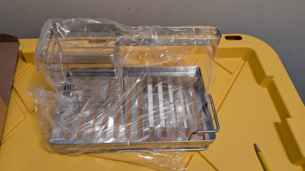 Rust-resistant rack keeps your sponges, brushes, and soap neatly organized and dry.